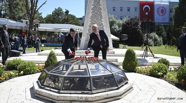 Fotoğraf: Fatih Kurt/AAErbaş, inanç ve mukaddesat uğruna can veren tüm şehitler için okunan Hatm-i Şerifleri kabul eylemesini Allah'tan niyaz etti.Programa şehit yakınları ile gaziler de katıldı.15 Temmuz Şehitler Anıtı'nda Tören TBMM'de de 15 Temmuz Demokrasi ve Milli Birlik Günü dolayısıyla 15 Temmuz Şehitler Anıtı'nda Tören düzenlendi.Törende TBMM Başkanı Numan Kurtulmuş ve Cumhurbaşkanı Yardımcısı Cevdet Yılmaz 15 Temmuz Şehitler Anıtı'na karanfil bıraktı. Kuran'ı Kerim tilaveti ile devam eden törende, Diyanet İşleri Bakanı Ali Erbaş dua okudu.Burada konuşan Yılmaz, 100 yıl önce istiklal mücadelesine karargah olmuş gazi mekanda, aynı ruhla gerçekleşen 15 Temmuz milli direnişini yad etmek için TBMM'nin düzenlemiş olduğu anma törenini son derece anlamlı bulduğunu söyledi.Hain kalkışmayı durdurmak için canlarını feda eden şehitlere Allah'tan rahmet, şehit yakınlarına sabır, gazilere sağlıklı ve huzurlu bir ömür dileyen Yılmaz, 15 Temmuz FETÖ darbe girişiminin, Türkiye'de demokrasi ve millet iradesine vurulmaya çalışılan prangaların ihanet dolu son halkası olduğunu vurguladı. Yılmaz, 27 Mayıs askeri darbesiyle başlayan müdahalelerle demokrasinin, vesayetçilerin hedefi olduğunu ve milletin sesinin defalarca bastırılmaya çalışıldığını dile getirerek, demokratik bir ortamda darbeye kalkışanların, milli iradeye karşı olduğunu kaydetti.O karanlık gece, milli iradenin sembolü olan Meclisin ve Cumhurbaşkanlığı Külliyesi'nin bombalanmasının milli irade düşmanlığının en açık göstergesi olduğunu vurgulayan Yılmaz, dolayısıyla bütün darbeler ve darbecilerin tabiatı gereği gayri milli olduğunu ifade etti."Milletimizin ferasetine sahip çıkmak için buradayız" Yılmaz, 15 Temmuz'da FETÖ üyelerinin tertip ettiği girişimin, milletin tanklara, silahlara göğsünü siper etmesiyle engellendiğini ve bir direniş destanına dönüştüğünü vurgulayarak, 15 Temmuz darbe girişiminin geçmişteki tüm darbe girişimlerinden bu yönüyle ayrıldığını söyledi. Cumhurbaşkanı Recep Tayyip Erdoğan'ın çağrısıyla, canları pahasına meydanlara akın eden milletin, karanlığı vatan sevgisiyle aydınlattığını belirten Yılmaz, şöyle devam etti:"Milli yürekler, sadece darbeyi püskürtmekle kalmamış, 27 gün boyunca demokrasi nöbetlerini sürdürmüştür. Bu büyük direniş, aslında tüm dünyanın ders çıkarması gereken bir hadisedir. Dünya demokrasi tarihine geçecek kıymette olan bu şanlı direnişe maalesef demokratik dünya yeterince sahip çıkamamıştır, gerekli dikkati, sahiplenmeyi ortaya koyamamıştır. 15 Temmuz Demokrasi ve Milli Birlik Günü'nde bizler, bir yandan demokrasiye olan güçlü sahiplenmemizi diğer yandan 'Türkiye Geçilmez' şuurunu her daim taze tutmak için buradayız. 'Biz bu dünyada milletin gücünün üzerinde bir güç görmedik, tanımadık, tanımıyoruz' diyerek her türlü vesayetin karşısında sarsılmaz bir kale gibi duran Sayın Cumhurbaşkanımızın onurlu duruşunu bir kez daha hatırlatıyoruz. FETÖ, PKK, DAEŞ ve diğer terör örgütleri eliyle, Türkiye'ye diz çökertmek isteyen odaklara, özgürlüğümüzden, yerli-milli politikalarımızdan, Türkiye Yüzyılından vazgeçmeyeceğiz demek için buradayız. Sandıktan sonuç alamayınca demokrasi dışı yollara tevessül edenlere karşı, milletimizin ferasetine sahip çıkmak için buradayız. Çanakkale ruhuyla, milli mücadele ruhuyla, Yenikapı ruhuyla buradayız. Vatandaşlarımızın demokratik desteğinden aldığımız güçle, şehitlerimizin aziz hatıralarına layık olabilmek ve kanlarıyla suladıkları bu vatanı daha da kalkındırmak yönünde var gücümüzle çalışıyoruz."Yılmaz, Türkiye'nin demokratikleşmesi ve Türk demokrasisine vurulan vesayet prangalarının kırılması yönünde tarihi adımlar attıklarını ve atmaya da devam ettiklerini belirterek, 15 Temmuz'dan çok kısa süre sonra, Türkiye'nin hemen yanı başında dizayn edilen terör devleti senaryolarının bertaraf edildiğini, yeni yönetim sistemi reformuyla da güvenliğinin teminat altına alındığını ifade etti."Kırmızı çizgilerimizi her fırsatta muhataplarımıza aktarıyoruz" Terör örgütü kadrolarına ağır darbeler vurulduğunu, tespit edilen örgüt üyelerinin, kamu kurumlarından uzaklaştırıldığını dile getiren Yılmaz, "Gençlerimizi, geleceğimizi ve özgürlüğümüzü hedefe koyan tüm çevrelere karşı tek bir şehidimizin kanını, tek bir gazimizin ahını yerde bırakmadık, bırakmayacağız. Uluslararası arenada da FETÖ başta olmak üzere terör örgütlerinin dezenformasyonlarına gerekli cevabı veriyor, diplomatik temaslarımızda bu konudaki kırmızı çizgilerimizi her fırsatta muhataplarımıza aktarıyoruz. Her zaman ifade ettiğimiz gibi FETÖ ve benzeri yapılanmaların panzehri, özgür düşünen bireyler ve devlet aklı ile hareket eden bağımsız yönetimlerdir." ifadelerini kullandı.Yılmaz, Anadolu'nun asırlardan süzülerek günümüze gelen irfanı ile bu hain yapılara karşı asil duruş sergileyen bir milletin ferdi olmaktan şeref duyduğunu anlatarak, bir daha yaşanmaması için hain kalkışmayı unutmadıklarını ve unutturmayacaklarını söyledi.Cumhurbaşkanı Yardımcısı Yılmaz, konuşmasının sonunda, tüm vatandaşları ve Türkiye'deki diplomatik temsilcileri, TBMM'ye gelerek açılışı gerçekleşen 15 Temmuz fotoğraf sergisini görmeye, hafızalarını tazelemeye davet etti. Muhabir: Zafer Fatih Beyaz, Harun Kutbe