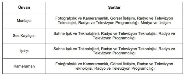 3. 2025 Yılı Montajcı, Ses Kayıtçısı, Işıkçı ve Kameraman Alım Sınavı Duyurusu