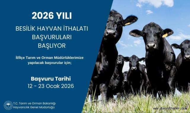 Kayseri Tarım ve Orman İl Müdürlüğü, 2026 yılı besilik hayvan ithalatına ilişkin başvuru takvimini duyurdu. Yapılan açıklamaya göre, yetiştiriciler başvurularını 12–23 Ocak 2026 tarihleri arasında gerçekleştirebilecek.