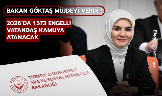 Aile ve Sosyal Hizmetler Bakanı Mahinur Özdemir Göktaş, 2026 yılında EKPSS ile bin 573 engelli vatandaşın kamu kurumlarına atanacağını duyurdu.