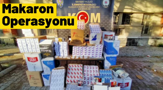 Kayseri İl Emniyet Müdürlüğü Kaçakçılık ve Organize Suçlarla Mücadele Şubesi ekipleri, kentte huzur ve güvenliği sağlamak amacıyla çalışmalara devam ediyor. Bu kapsamda ekiplerce yapılan çalışmalarda bir şüphelinin depo olarak kullandığı tespit edilen yerde yapılan aramalarda 220 bin dal boş makaron, 30 bin dal doldurulmuş makaron ve 10 kilogram kaçak tütün ele geçirildi. Kaçak ürünlere el konurken, şüpheli hakkında işlem başlatıldı.