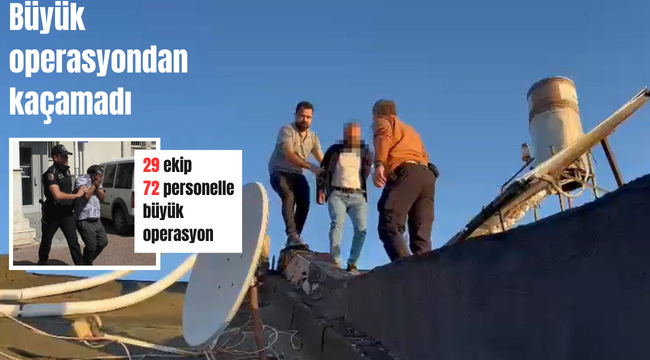 Operasyon neticesinde hakkında ‘Bina içerisinde muhafaza altına alınmış olan eşya hakkında hırsızlık’ suçlarından 18 yıl kesinleşmiş hapis cezası olan A.T. isimli şahıs, hakkında ‘Uyuşturucu veya uyarıcı madde ticareti yapma veya sağlama ve tutuklu veya hükümlünün kaçması’ suçlarından yakalama emri bulunan toplamda 15 yıl 6 ay kesinleşmiş hapis cezası bulunan M.D. isimli şahıs, hakkında ‘bina içerisinde muhafaza altına alınmış eşya hakkında hırsızlık, adet gereği açıkta bırakılmış eşya hakkında hırsızlık, kullanım gereği açıkta bırakılmış eşya hakkında hırsızlık’ suçlarından toplamda 14 yıl 9 ay 15 gün kesinleşmiş hapis cezası olan İ.K. isimli şahıs, hakkında ‘dolandırıcılık’ suçundan 12 yıl 3 ay kesinleşmiş hapis cezası bulunan O.K. isimli şahıs, hakkında ‘bina içerisinde muhafaza altına alınmış olan eşya hakkında hırsızlık’ suçundan 10 yıl 2 ay kesinleşmiş hapis cezası olan U.Y. isimli şahıs, hakkında ‘bina içerisinde muhafaza altına alınmış olan eşya hakkında hırsızlık, hükümlü veya tutuklunun kaçması, adet gereği açıkta bırakılmış eşya hakkında hırsızlık’ suçlarından 9 yıl 6 ay kesinleşmiş hapis cezası olan yabancı uyruklu Y.C. isimli şahıs, hakkında ‘kullanım gereği açıkta bırakılmış eşya hakkında hırsızlık ve uyuşturucu veya uyarıcı madde kullanma veya satın alma’ suçlarından 5 yıl 4 ay kesinleşmiş hapis cezası bulunan M.A. isimli şahıs, hakkında ‘bina içerisinde muhafaza altına alınmış olan eşya hakkında hırsızlık, kullanım gereği açıkta bırakılmış eşya hakkında hırsızlık suçlarından 4 yıl 6 ay kesinleşmiş hapis cezası bulunan C.Ş. isimli şahıs, hakkında ‘binanın eklentileri içerisinde muhafaza altına alınmış eşya hakkında hırsızlık’ suçundan 3 yıl 1 ay 15 gün kesinleşmiş hapis cezası bulunan H. A. isimli şahıs, hakkında ‘bina içerisinde muhafaza altına alınmış olan eşya hakkında hırsızlık’ suçundan 3 yıl 1 ay 15 gün kesinleşmiş hapis cezası bulunan İ.Ç. isimli şahıs, hakkında ‘silahla tehdit’ suçundan 1 yıl 6 ay 22 gün kesinleşmiş hapis cezası bulunan Y.G. isimli şahıs, hakkında ‘kasten yaralama’ suçundan 1 yıl 3 ay kesinleşmiş hapis cezası bulunan S.S. isimli şahıs, hakkında ‘zorla dilendiricilik yaptırma’ suçundan 1 yıl 3 ay kesinleşmiş hapis cezası bulunan E.C. isimli şahıs, hakkında ‘tutuklu veya hükümlünün kaçması ve kullanmak için uyuşturucu veya uyarıcı madde kullanma veya satın alma’ suçlarından ifadesi bulunan M.E. isimli şahısla birlikte toplam 14 şahıs yakalandı. Yakalanan şahıslar arasında hakkında ‘bina içerisinde muhafaza altına alınmış olan eşya hakkında hırsızlık’ suçundan 3 yıl 1 ay 15 gün kesinleşmiş hapis cezası olan H.A. isimli şahıs saklandığı evin çatısında yakalanarak gözaltına alındı.