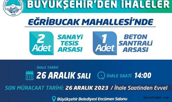 Mülkiyeti Kayseri Büyükşehir Belediyesi’ne ait olan Melikgazi ilçesi Eğribucak Mahallesi’nde bulunan 2 adet sanayi tesis alanı arsası ve 1 adet beton santrali arsası, “Kapalı Teklif Usulü” ile satılacak.Söz konusu 2 adet arsanın ve 1 adet beton santrali arsasının ihalesi 26 Aralık 2023 Salı günü saat 14.00’te Büyükşehir Belediyesi Encümen Salonu’nda gerçekleştirilecek.İhalelerinin son müracaat tarihi ihale saatinden evvel olarak belirlenirken, müracaatlar ise Encümen Başkanlığı’nın (İhale Komisyonu) sekreterya görevini yapan Kararlar Şube Müdürlüğü kalemine yapılacak.