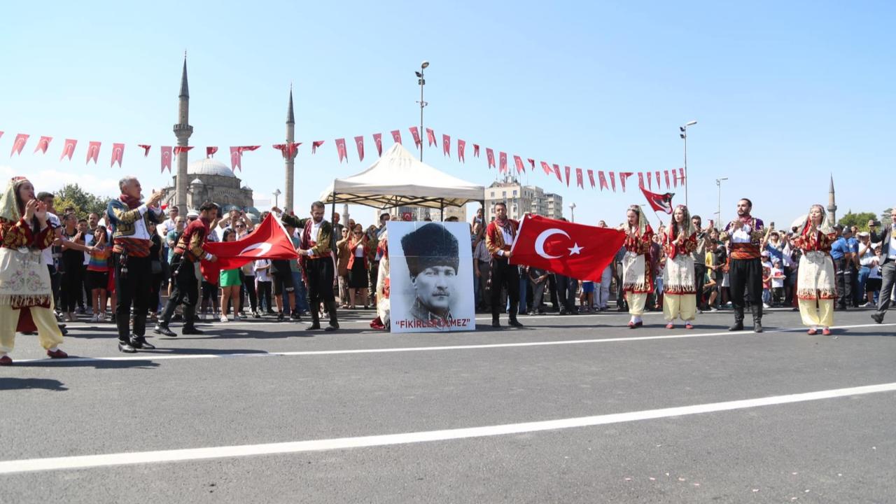Değerlerine, vatanına sahip çıkan bir Kayseri gördüğünü belirten Kayseri Büyükşehir Belediye Başkanı Memduh Büyükkılıç, “26 Ağustos, Sultan Alparslan’ın Malazgirt’i kapı olarak kabul edip, Anadolu’ya girişi ile bir fetih sürecini başlatması, 30 Ağustos’un yine 101’inci yıl dönümünü kutluyoruz, 30 Ağustos Mustafa Kemal Atatürk ile taçlanan bir süreçtir. Değerlerimize sahip çıkan, bayrağımıza, vatanımıza, milletimize sahip çıkmak için çırpınan bir Kayseri’den söz ediyoruz. Birliğin, beraberliğin en güzel sembolünü burada görüyoruz. Daha nice 101’li yıllara diye dua ve temennide bulunuyorum. Eserlerimizle de bunu taçlandırmamız gerektiğini belirtiyor, halkımıza saygılar sunuyoruz” diye konuştu.