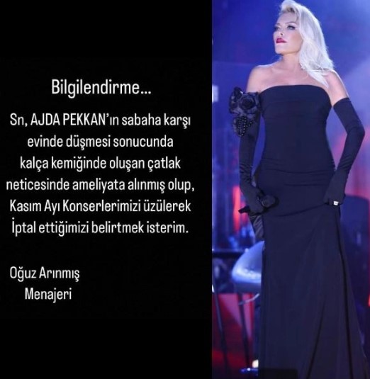 En son 29 Ekim kutlamalarında sahneye çıkan ve yaptığı dansla dikkat çeken Ajda Pekkan, apar topar hastaneye kaldırıldı. Menajeri tarafından yapılan açıklamada Pekkan'ın evde düşüp sakatlandığı ortaya çıktı.AJDA PEKKAN HASTANEYE KALDIRILDISüperstar Ajda Pekkan'ın menajeri Oğuz Arınmış, Pekkan hakkında herkesi korkutan bir paylaşım yaptı. Geçen günlerde keyfi yerine olan ve 29 Ekim kutlamalarında kurtlarını döken Pekkan'ın evde düşüp sakatlandığı belirtildi.KONSERLERİ İPTAL EDİLDİYapılan açıklamada, 76 yaşındaki ünlü sanatçının evinde sabah saatlerinde düştüğü ve kalça kemiğini kırdığı açıklandı. Kemiği kırılan Ajda Pekkan'ın ameliyata alındığı ve Kasım konserlerinin de iptal edildiği kaydedildi.