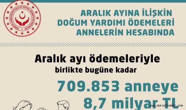 Aralık ayı doğum yardımlarını annelerin hesaplarına yatırdı