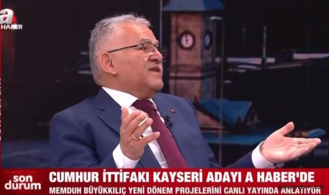 Cumhur İttifakı Kayseri Büyükşehir Belediye Başkan Adayı Memduh Büyükkılıç, A Haber'de sabah kuşağına konuk oldu.A Haber'de projelerini anlatan Büyükşehir Belediye Başkan Adayı Memduh Büyükkılıç, "Bizde borç olmaz. Bunun kültürünü de rahmetli Erbakan hocamızdan aldık. deprem yönetmeliklerine uyan, gecekondulaşmaya izin vermeyen, ruhsatsız yapılaşmaya izin vermeyen bir kültürün sahibiyiz. 200 milyon metrekare alanın röntgenini çekiyoruz. Yenilenebilir enerji deyince akla Kayseri Büyükşehir Belediyesi'nin yatırımları akla geliyor. Su konrusunda 22. sıradayız. Elektrikli otobüslerimiz var. 15 tane yeni elektrikli otobüs aldık. Kayseri yeşil alan konusunda zirve yapmış bir şehirdir. Yeni dönemde gençlerimizi çok önemsiyoruz. Akıllı şehir projelerimizle gençlerimize her türlü olanakları sunacağız. Kartal kavşağı'nda katlı kavşak yaparak konforunu arttıracağız. kayserili hemşehrilerimizin hepsini kucaklayacağız. Hep beraber rekora izma atacağız. " açıklamasında bulundu.