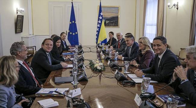 Avrupa Birliği (AB) Komisyonunun genişlemeden sorumlu üyesi Oliver Varhelyi, Bosna Hersek'e gerçekleştirdiği resmi ziyaret kapsamında, Bosna Hersek Devlet Başkanlığı Konseyi Başkanı Zeljka Cvijanovic, konseyin Hırvat üyesi Zeljko Komsic ve Boşnak üyesi Denis Becirovic ile bir araya geldi.