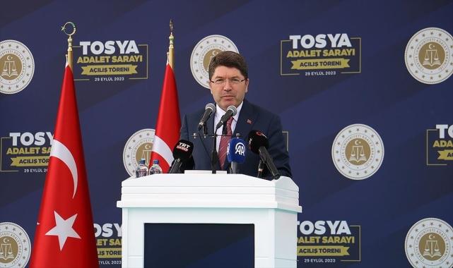 Adalet Bakanı Yılmaz Tunç, Kastamonu'nun Tosya ilçesinde yapılan adalet sarayının açılışındaki konuşmasında, 400'e yakın yeni adalet sarayını ülke genelinde, il ve ilçelerde inşa ettiklerini söyledi. Fiziki mekanların yanı sıra uygulamayı da daha iyi hale getirmek için çalışma yaptıklarına işaret eden Tunç, mevzuatın yenilenmesi konusunda son 21 yılda önemli çalışmalar yapıldığını, ihtiyaçlar doğrultusunda yeni kanunlar yapıldığını anlattı."Önce insan" demeye devam edeceklerini dile getiren Tunç, "Eğitimden sağlığa, sosyal politikalardan kültüre varıncaya kadar her alanda insanımızı güçlendireceğiz. Nereden nereye geldiğimiz belli. Sağlıkta, eğitimde, adalette belli. Her alanda insanımızı bugüne kadar güçlendirmenin gayreti içerisinde olduk. Bundan sonra da insanımızı, 'Önce insan', 'İnsanı yaşat ki devlet yaşasın' diyerek güçlendirmeye devam edeceğiz inşallah." ifadesini kullandı.Yargı bağımsızlığının önemine değinen Tunç, şöyle devam etti:"Adaletten hiç ayrılmadan, hukukun üstünlüğünden hiçbir zaman taviz vermeden yolumuza devam edeceğiz inşallah. Türkiye'de yargı bağımsızlığını, tarafsızlığını tam anlamıyla daha da ileriye taşıyarak, hukukun üstünlüğüne inanarak, vatandaşlarımızın özellikle hak kayıplarının asgariye indirilmesi ve onların yargı hizmetlerinden en kaliteli ve hakkaniyetli şekilde yararlanmasının gayreti içerisinde olacağız. Temel hak ve özgürlüklerin önündeki engelleri birer birer kaldırdık. Bundan sonra da eğer engel koymak isteyen olursa onların önünde milletimizle beraber duracağız. Demokrasimizi güçlendirmeye, demokrasi çıtamızı yükseltmeye, milli iradenin bayrağını hiçbir zaman yere düşürmemeye gayret göstereceğiz.""Milletimizin desteğiyle demokrasiye sahip çıktık"Her işi milletin desteğiyle yaptıklarını vurgulayan Tunç, "Gezi olaylarını sizlerin desteğiyle, birlik bütünlüğü sayesinde aştık. 17-25 Aralık yargı ve emniyet darbesi sürecini sizlerin verdiği desteklerle aştık. 15 Temmuz hain FETÖ darbe kalkışmasında yine milletimizin desteğiyle demokrasiye sahip çıktık, milli iradeye sahip çıktık, ülkemize sahip çıktık." diye konuştu.Tunç, yargının bu süreçte milletinin yanında olduğunun altını çizerek, sözlerini şöyle sürdürdü:"O gece kahramanca mücadele eden, darbecilere karşı ilk dakikalardan itibaren soruşturmaları başlatan yargı mensuplarımıza, savcılarımıza, hakimlerimize müteşekkiriz. Milletimizle beraber hareket ettiler. İşte milletin yargısı bu. Hazmedilemeyen, birilerinin hazmedemediği husus da bu. Yargıya sürekli taş atanlar, sürekli karalama çalmaya çalışanlar, işte dün Yargıtay'ımızın Gezi olaylarıyla ilgili vermiş olduğu kararda, yargıya yönelik saldırıları bir kez daha gördük. Yargı bağımsız, tarafsız. Anayasa'mızın 9. maddesi, yargı yetkisi bağımsız mahkemelerce kullanılır, tarafsız mahkemelerce kullanılır. Anayasa'mızın 138. maddesi açık. Hiçbir organ, merci, kişi, yargı yetkisinin kullanılmasında mahkemelere, hakimlere emir ve talimat veremez. Yargı kararları eleştirilebilir ancak yargı kararları üzerinden, özellikle yargının tamamını töhmet altında bırakabilecek hakarete varan cümlelerle saldırırsanız, orada Anayasa'nın 138. maddesini hatırlatmak gerekecek."Hukuk devletinde herkesin hakkının savunulacağını belirten Tunç, şunları kaydetti:"Siz sokakları ateşe vereceksiniz, onlarca insanın ölümüne neden olacaksınız, kamunun, özel şahısların araçlarını altüst edip, ortalığı ateşe verip dükkanları taşlayacaksınız, Gezi olaylarını çıkarıp, 'Gezi masumdu' diyeceksiniz. Hukuk devletinde sokakları ateşe verenlerin, insanları öldürenlerin, onları tahrik edenlerin hesabı sorulmayacak mı? Hesabı sorulmazsa orada hukuk devletinden bahsetmek mümkün olabilir mi? 'Gezi yargılanamaz' ne demek? Gezi'nin ne olduğunu bu millet gördü. Orada iki ağaç bahane edilerek sokakları ateşe verenlerle ilgili yargı sürecinin haksız bir yargılama olduğunu nasıl söyleyebilirsiniz? Bunu söylerken de 'Talimatla karar verdiler' diyerek yargıya hakaret ederseniz, burada siz yargı bağımsızlığına, tarafsızlığına saygı duymuyor, hukuk devletine benzemiyorsunuz demektir. O nedenle yargının kararlarına saygı duyacağız. Özellikle hukukun üstünlüğü, milletimizin huzuru, terörle mücadele noktasındaki kararlılığımızdan hiçbir zaman taviz vermeyeceğiz inşallah."Hakim ve savcı sayısının 24 bine, avukat sayısının 200 bine yaklaştığına dikkati çeken Tunç, "Adaletin zamanında işlemesi lazım. Bu anlamda da adaletin gecikmemesiyle ilgili geçmiş dönemde hedef süre uygulamaları başlatılmıştı. Birçok tedbir aldık. Bu tedbirlerin hayata geçirilmesiyle ilgili çok önemli mesafe aldık. Yargı reformu strateji belgeleriyle, insan hakları eylem planında konulan hedeflerle çok önemli mesafeler aldık. Şimdi yeni dönemde, Türkiye Yüzyılı'nın yargı reformu strateji belgesini hazırlıyoruz. İnsan hakları eylem planı belgesini hazırlıyoruz." değerlendirmesinde bulundu. Muhabir: Özgür Alantor,Bilal Kahyaoğlu