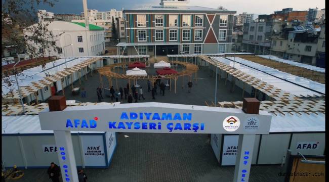 Kahramanmaraş merkezli 6 Şubat'ta meydana gelen depremlerden etkilenen Adıyaman'da, iş yerleri yıkılan veya ağır hasar gören esnaf için 34 dükkandan oluşan prefabrik çarşı kuruldu.