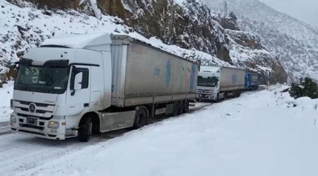 Yolda mahsur kalan tırlar iş makinelerinin yardımıyla çekilmeye çalışılırken, ekiplerin yoğun çalışmasının ardından karayolu kontrollü olarak ulaşıma açıldı.
