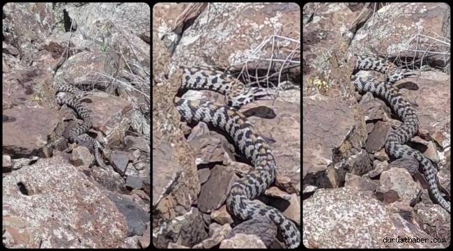 Doğa tutkunu İbrahim Altun ve arkadaşları, dağlık bölgede gezerken taşlar arasında bir yılan fark etti.