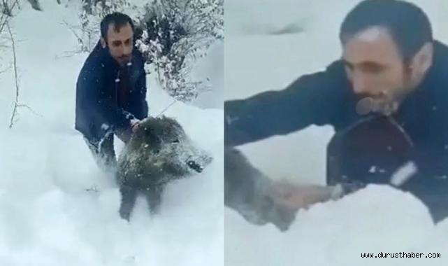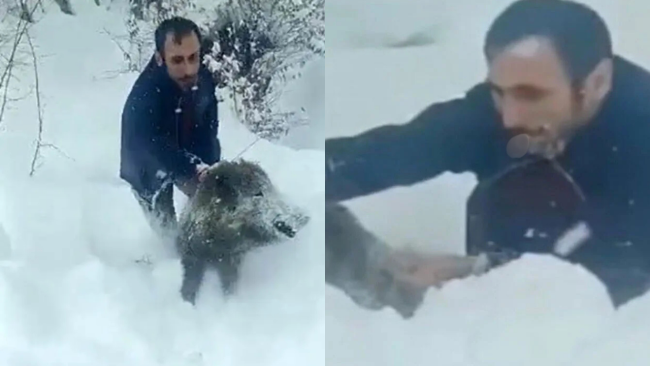Türkiye’nin gündemine kısa sürede giren olay, Sinop’un Erfelek ilçesinde yaşandı. Karlı bir yolda aracından inen Şenel Yılmaz, yol kenarında karşılaştığı yaban domuzu sürüsünü geçici olarak uzaklaştırdı. Sürüden ayrılan bir domuzu kısa süreliğine eliyle tutması sosyal medyada hızla yayıldı.