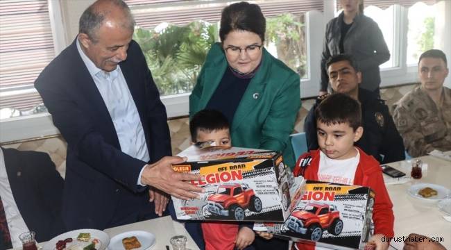 Konuşmanın ardından programa katılan protokol üyeleri ve vatandaşlarla bayramlaşan Yanık, 2 çocuğa oyuncak araba hediye etti.