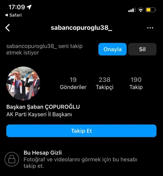 AK Parti Kayseri İl Başkanı Şaban Çopuroğlu, adına sahte sosyal medya sayfalarının açıldığını ve bunlara itibar edilmemesi uyarısında bulundu.