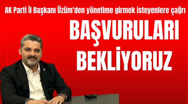 AK Parti Kayseri İl Başkanı Fatih Üzüm “Perşembe günü akşam saat 17’ye kadar İl Yönetiminde yer almak isteyen tüm arkadaşlarımızın başvurularını parti binamızın 7’inci katında alacağız” dedi.