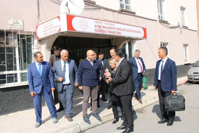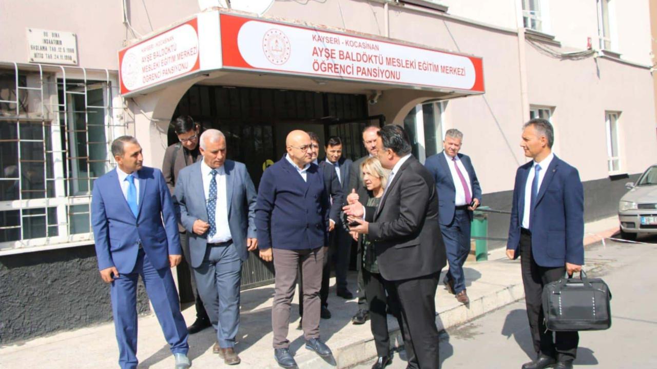 Cıngı, Kayseri İl Milli Eğitim Müdürü Bahameddin Karaköse ve Şube Müdürleri ile bir araya geldi. Ayşe Baldöktü Mesleki Eğitim Merkezi Öğrenci Pansiyonu'nu da ziyaret eden Cıngı, burada incelemelerde bulundu.