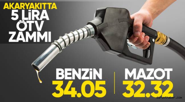 Cumhurbaşkanı Erdoğan'ın imzasıyla Resmi Gazete'de yayımlanan karara göre akaryakıtta ÖTV tutarları arttı. 6 liralık artış gece yarısından itibaren pompa fiyatlarına yansıdı.