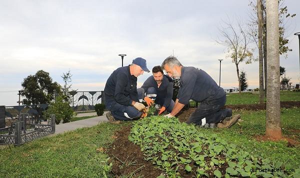 Akçaabat'ta seralarda yetişen çiçekler dikiliyor
