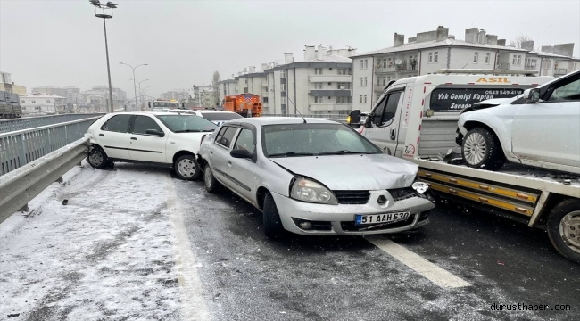 Aksaray'da kar yağışı ve buzlanma nedeniyle 9 aracın karıştığı zincirleme kazada 3 kişi yaralandı.