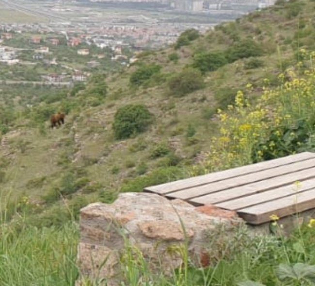Kayseri’nin Talas İlçesine bağlı Ali Dağı Yürüyüş yolunda bir boz ayı ve yavruları görüldü. Dağ yolunda yürüyüş yapan vatandaşlar ayıyı fark edince telefon kameralarıyla bu anı kaydetti. Vatandaşları gören ayı ve yavruları daha sonra bölgeden uzaklaştı.