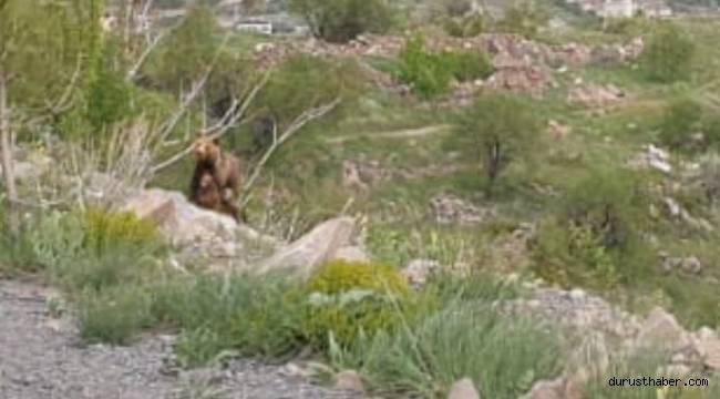 Kayseri’de Ali Dağı yürüyüş yolunda boz ayı ve yavruları görüldü. Boz ayı bölgede yürüyüş yapan vatandaşların kamerasına yansıdı.