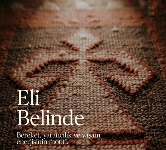 El dokuma halılarda sıkça rastlanan Eli Belinde motifi, bereketin, yaratıcılığın ve dişil gücün sembolü olarak kabul ediliyor. Evi büyüten ve yaşamı çoğaltan niyetlerle dokunan bu motif, Anadolu kadınının üretkenliğini temsil ediyor.
