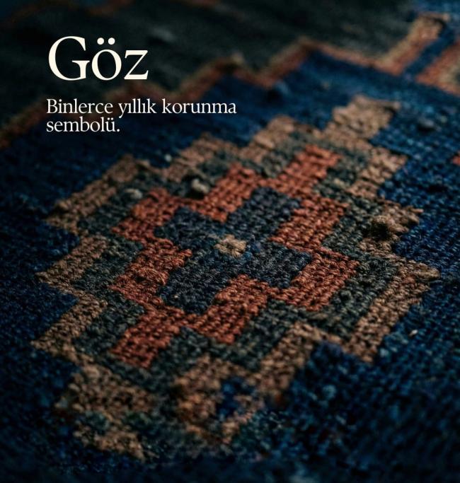 Göz motifi ise kötülüğü uzak tutmak ve huzuru çağırmak için işlenen en eski koruma sembollerinden biri olarak öne çıkıyor. Evde güven ve dinginlik dileğiyle halılara ilmek ilmek işleniyor.