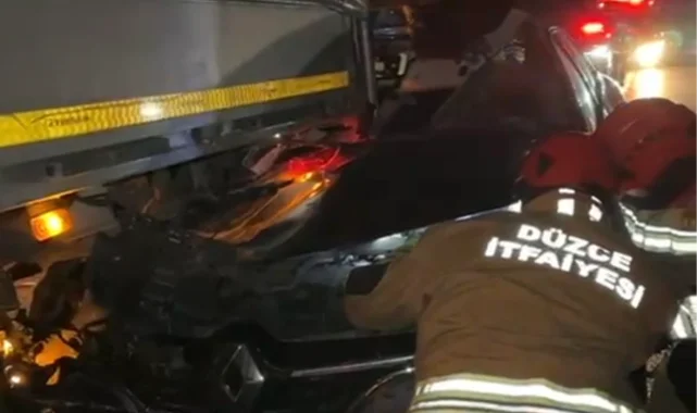 Anadolu Otoyolu Düzce kesiminde otomobilin tıra arkadan çarpması sonucu sürücü U.T. yaralanarak hastaneye kaldırıldı.