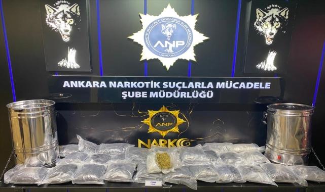 Ankara'nın Çankaya ilçesinde düzenlenen uyuşturucu operasyonunda 18 kilo 100 gram esrar ele geçirildi. Ankara Emniyet Müdürlüğünden yapılan açıklamaya göre, Narkotik Suçlarla Mücadele Şube Müdürlüğü ve Kaçakçılık Suçlarıyla Mücadele Şube Müdürlüğü ekiplerince, kent genelinde uyuşturucu madde imal ve ticaretini önlemek amacıyla çalışma yapıldı.Çankaya'daki operasyonda, A.Ç'ye ait yaklaşık 4,5 milyon lira değerinde olduğu değerlendirilen 18 kilo 100 gram esrar ele geçirildi.Gözaltına alınan şüphelinin işlemlerin ardından adliyeye sevk edileceği öğrenildi.