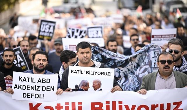 Cuma namazının ardından ABD'nin Ankara Büyükelçiliği önünde toplanan grup sloganlar atarak İsrail aleyhinde pankartlar açtı.