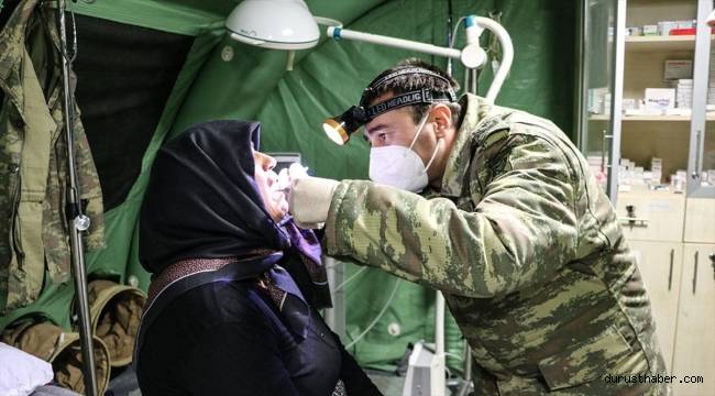 Kahramanmaraş'a kurulan Milli Savunma Bakanlığı (MSB) Seyyar Sahra Hastanesi ile depremzedelere sağlık hizmeti sağlanıyor.