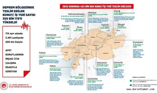 Deprem sonrası başlatılan konut ve iş yeri yapım süreçleri, bakanlık talimatlarıyla hız kesmeden sürüyor. Kayseri’de 64 konut tamamlanırken, Türkiye genelinde 2025 yılı sonu itibarıyla hedeflenen toplam konut sayısının 452 bin 983 olduğu açıklandı.