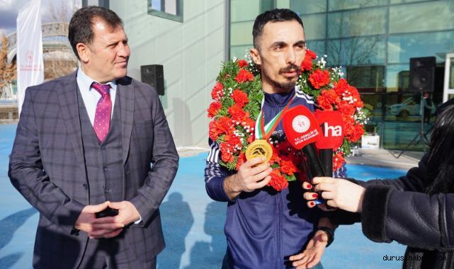 3. Avrupa Halter Şampiyonu Muammer Şahin, çiçek ve meşalelerle karşılandı