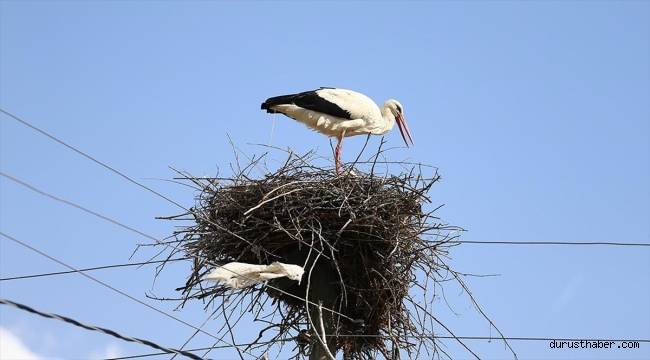 Sonbaharda sıcak bölgelere göç eden leylekler, havanın ısınmasıyla Bingöl'deki yuvalarına yerleşmeye başladı.