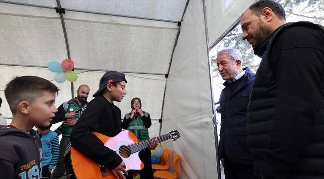 Akar, Genelkurmay Başkanı Orgeneral Güler ile Kahramanmaraş'taki incelemeleri kapsamında Fuar Alanı ve Atatürk Parkı'nda çocuklar için kurulan oyun çadır alanında incelemelerde bulundu.Milli Eğitim Bakanlığı tarafından kurulan temel eğitim destek çadırları ile psikososyal destek çadırlarında incelemelerde bulunan ve faaliyetlere ilişkin bilgi alan Akar, buralardaki çocuklarla yakından ilgilendi.Bazı depremzede çocuklarla masa tenisi de oynayan Bakan Akar, ziyaretiyle çocuklara moral verdi.Öte yandan Bakan Akar, Beşiktaş Futbol Akademisi tarafından kurulan çadır kentte de incelemelerde bulunarak çalışmalara ilişkin bilgi aldı.