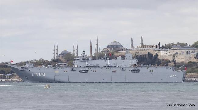 Denizcilik geleneklerine göre gemiye çıkışında "silistre" adı verilen denizci düdüğü çalınarak karşılanan Bakan Akar, tören mangasını selamladı.Deniz Kuvvetleri Komutanlığının yeni amiral gemisi TCG Anadolu'nun köprü üstüne çıkan Akar, burada seyir subayından yapılacak Boğaz geçişine ilişkin bilgi aldı.Son hazırlıkların tamamlanmasının ardından Bakan Akar'ın "avara" komutu sonrası gemi limandan ayrılış faaliyetlerine başladı.Gemi komutanının "Bismillah halatlar fora" komutu sonrasında geminin limana bağlı olduğu halatlar toplandı ve batarya düdüğü çalınarak gemi seyrine başladı.TCG Anadolu, 23 Nisan Ulusal Egemenlik ve Çocuk Bayramı faaliyetleri kapsamında İstanbul Boğaz geçişi yaparak halkı selamlayacak.Boğaz geçişi sırasında Cumhurbaşkanı Recep Tayyip Erdoğan'ı da selamlayacak TCG Anadolu'dan 21 pare top atışı yapılacak. Hava Kuvvetleri Komutanlığına bağlı uçak ve helikopterler de geçişe eşlik edecek.Geminin limandan ayrıldığı anlar, sahilde toplanan çok sayıdaki vatandaş tarafından ilgiyle izlendi.