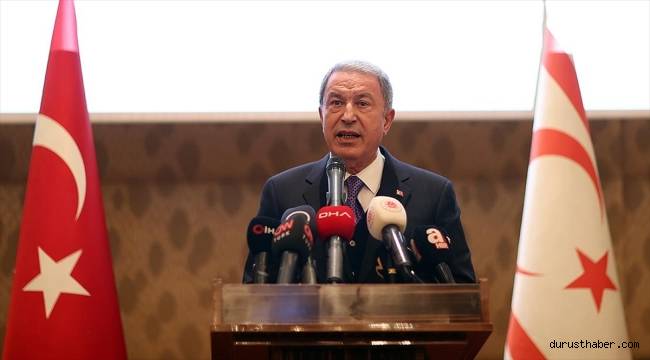 Akar, "Bunun özellikle üçüncü taraflarca görülmesi lazım. Üçüncü taraflardan objektif, tarafsız şekilde olayları görmesini ve Kıbrıs Türkünün hakkını, hukukunu teslim etmesini bekliyoruz." dedi.Kalıcı bir barış ve istikrar ortamının oluşabilmesi için KKTC'nin, Kıbrıs Türkünün egemenliğinin, bağımsızlığının, hakkının, hukukunun teslim edilmesi gerekliliğini vurgulayan Hulusi Akar, "Bunlar kabul edilmediği, Türk varlığına gerekli saygı gösterilmediği sürece bir çözüm olamayacağını hep beraber gördük." diye konuştu.Yarım asır süren görüşmelerin ardından bir çözüme varılamadığını dile getiren Bakan Akar, "Bunun üzerine ne yaptık, kararımızı verdik, egemen, bağımsız iki devletten bahsediyoruz. Artık mesele bu devletin kurulması değil, kurulmuş olan bu devletin tanınması meselesi. dedi.Türk Devletleri Teşkilatında, KKTC'ye gözlemci üye statüsü verilmesinin önemine de işaret eden Hulusi Akar, şunları kaydetti:"Bizler, garanti ve ittifak anlaşmaları çerçevesinde yapılması gerekenleri yaptık, yapmaya devam edeceğiz. Diğer taraftan Yunanistan ile olan münasebetlerimizi de etkili bir şekilde sürdürmeye ve barış elimizi uzatmaya devam ediyoruz. Biz barıştan, görüşmelerden yanayız. Türkiye ve Yunanistan arasındaki sorunların barışçıl yol ve yöntemlerle çözülmesinden yanayız ancak diğer taraftan da ne Kıbrıslı kardeşlerimizin ne de kendi haklarımızın çiğnenmesine, bir oldubittiye izin vermeyeceğimizi de herkesin bilmesi lazım. 'Barış' dememiz bir zafiyet, 'hakkımızı koruyacağız' dememiz de hiçbir şekilde bir tehdit değil."Bunun çok iyi anlaşılması gerektiğini belirten Akar, şöyle devam etti:"Fakat Yunanistan'da belli bazı siyasiler bizim yaptığımız çalışmaları, barış girişimlerini maalesef sabote, tahrip ediyor, kendi iç çekişmelerine iki ülkenin hak ve menfaatini feda ediyor. Aynı zamanda bu siyasiler yaptıklarıyla kendi halklarının da güvenliğini ve refahını tehlikeye atıyor. Anlaşılmaz şekildeki silahlanma sevdasıyla iki ülke arasındaki barışı, istikrarı bozmak için ellerinden geleni yapmaya devam ediyorlar. Biz diyalogdan yana olduğumuzu her zaman söyledik fakat hakkımızı, hukukumuzu da çiğnetmeyeceğiz."Resepsiyona, Bakan Akar ile Genelkurmay Başkanı Orgeneral Yaşar Güler, Kara Kuvvetleri Komutanı Orgeneral Musa Avsever, Deniz Kuvvetleri Komutanı Oramiral Ercüment Tatlıoğlu, Hava Kuvvetleri Komutanı Orgeneral Atilla Gülan ile Milli Savunma Bakan Yardımcısı Alpaslan Kavaklıoğlu da katıldı.