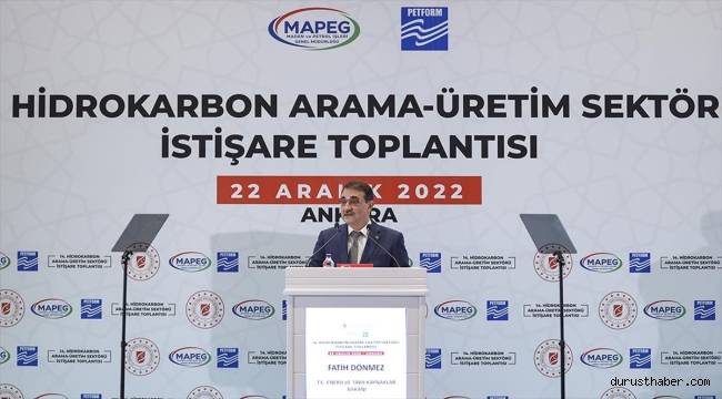 Enerji ve Tabii Kaynaklar Bakanı Fatih Dönmez, "2022 yılı itibarıyla 30'u yerli, 10'u yabancı toplam 40 şirket arama-üretim faaliyetlerini halihazırda devam ettiriyor." dedi.
