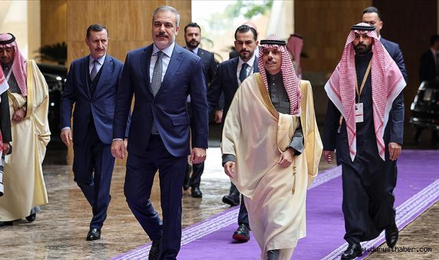 Dışişleri Bakanı Hakan Fidan, Arap Birliği'ne üye ülkelerin katılımıyla Suudi Arabistan'ın başkenti Riyad'da düzenlenen Suriye toplantısına katıldı.Bakanlığın X sosyal medya hesabından yapılan paylaşımda, Fidan'ın, Arap Birliği'nden Suudi Arabistan, Suriye, Bahreyn, Mısır, Irak, Ürdün, Kuveyt, Lübnan, Umman, Katar ve Birleşik Arap Emirlikleri dışişleri bakanlarıyla Riyad'da düzenlenen Suriye toplantısına katıldığı belirtildi."Türkiye, Suriye halkının "zorlu yolunu kolaylaştırmak" için üzerine düşeni yapacak"Dışişleri Bakanlığı kaynaklarından edinilen bilgiye göre, Fidan, Suudi Arabistan'ın başkenti Riyad'da yapılan Suriye toplantısında Suriye'deki yeni yönetimin Dışişleri Bakanı Ahmed eş-Şeybani'nin de olmasının "dönüm noktası ve tarihi bir an olduğunu" ifade etti.Bölge ülkeleri olarak Suriye'deki gelişmelerin doğru yöne yönlendirilmesinde en büyük sorumluluğun taşındığını vurgulayan Fidan, Suriye'nin toprak bütünlüğünün, birliği ve egemenliğinin, tüm çabalarını üzerine inşa ettikleri temel ilkeler olmaya devam ettiğinin altını çizdi.Fidan, Suriye'deki normalleşme işaretlerinin her geçen gün güçlendiğine dikkati çekerek, "Bu kritik dönemde, uluslararası toplumun beklentileri ile Suriye'deki yeni yönetimin karşılaştığı gerçekler arasında dikkatli bir denge kurarak dengeleyici bir güç olarak hareket etmeliyiz." diye konuştu.