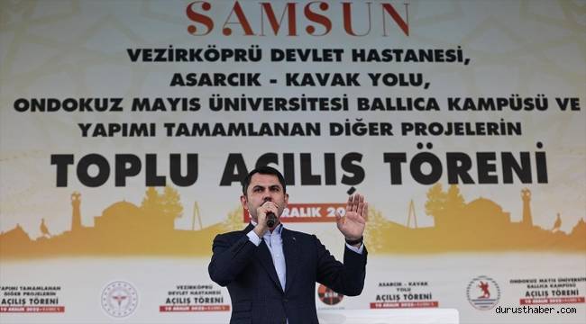 akan Kurum, Samsun'da Cumhurbaşkanı Recep Tayyip Erdoğan'ın katılımıyla düzenlenen ve yapımı tamamlanan projelerin toplu açılışının gerçekleştirildiği törende konuşma yaptı.