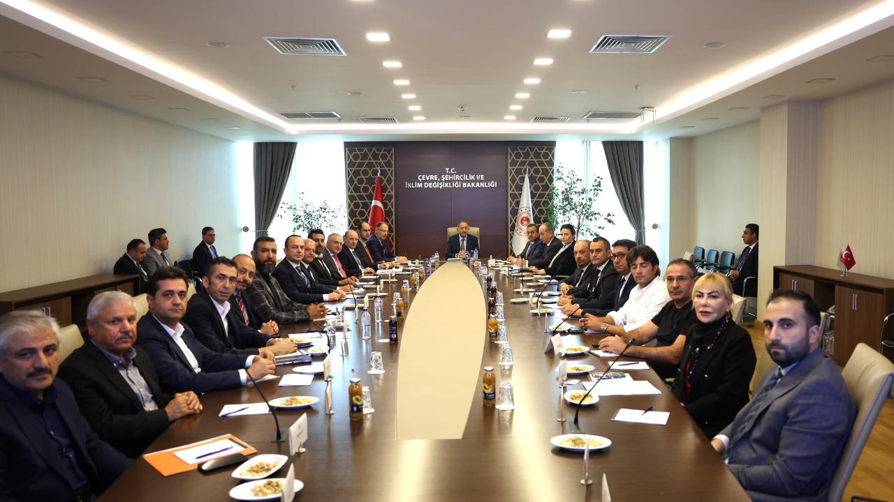 Çevre, Şehircilik ve İklim Değişikliği Bakanı Mehmet Özhaseki, deprem bölgesinde faaliyet gösteren beton santrali, agrega tesisi, taş ocağı ve çimento fabrikalarının temsilcileriyle bir toplantı gerçekleştirerek deprem bölgesindeki inşaat maliyetleri hakkında bilgi aldı.