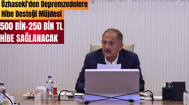Çevre, şehircilik ve İklim Değişikliği Bakanı Mehmet Özhaseki, kendi evini yapacak depremzedelere 500 bin, iş yeri için de 250 bin lira hibe desteği verileceğini duyurdu.
