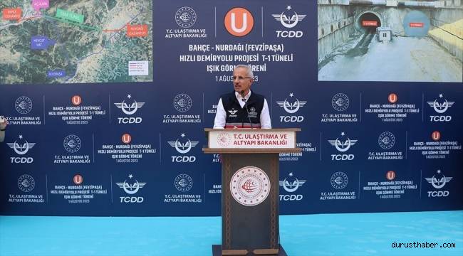 Uraloğlu, burada yaptığı konuşmada, demir yollarında depremler nedeniyle seyrüsefer hizmetlerinin aksatılmadan yürütülmesi için "Deprem Hasarlarının Giderilmesi" projesini 2023 yılı yatırım programlarına aldıklarını söyledi.2003'ten bu yana Cumhurbaşkanı Recep Tayyip Erdoğan liderliğinde demir yollarında çok büyük yatırımların yapıldığını aktaran Uraloğlu, şöyle konuştu:"Vatandaşlarımızı yüksek hızlı trenle buluşturduk. Ana hatları modernize ettik, elektrikli ve sinyalli hale getirerek kapasitelerini artırdık. Bunun sonucunda da hem yolcu hem de yük taşımacılığında rekorlar kırdık. 136 kilometre uzunluğundaki İzban'la İzmir'i bir uçtan bir uca bağladık. Başkentray'la Ankara'nın ulaşımına nefes aldırdık. Asrın Projesi Marmaray'la İstanbul boğazının iki yakasını demir yolu ile birbirine bağladık. Marmaray'ı açıldığı günden bugüne kadar 1 milyar kişi kullandı. Gaziantep'te de 25,5 kilometrelik 16 istasyonun bulunduğu Gaziray'ı 5 Kasım 2022'de Cumhurbaşkanımız Recep Tayyip Erdoğan'ın teşrifleriyle hizmete sunduk. Gaziray, açıldığı günden bugüne kadar 4 ayı ücretsiz olmak üzere toplam 1 milyon 676 bin yolcuya hizmet verdi."Yatırımlar ile Türkiye Yüzyılı'nın önemli kilometre taşlarını örmeye devam ettiklerini anlatan Uraloğlu, Bahçe-Nurdağı Hızlı Tren Projesi ile Bahçe-Nurdağı istasyonları arasının 32,5 kilometreden 17 kilometreye düşeceğini ifade etti. Projede yer alan çift tüplü tünelin birincisini açma işleminin 2020 Şubat ayında tamamlandığını anımsatan Uraloğlu, "60 kilometre olan işletme hızı 160 kilometreye, yük trenleri seyir süreleri 80 dakikadan 15 dakikaya, yolcu trenleri seyir süreleri 60 dakikadan 10 dakikaya düşecek." dedi.Şubat 2021'de delme işlemine başlanan T-1 Tüneli'nde ise ışık görme merasiminin yapıldığını dile getiren Uraloğlu, şunları kaydetti:"Türkiye'nin en uzun çift tüplü demir yolu tüneli sayesinde Bahçe İstasyonu'nu Nurdağı İstasyonu'na bağlayacağız. Projemizle birlikte aynı zamanda Adana-Gaziantep arası seyahat süresi de 1 saat 30 dakikaya düşecek. Güneydoğu'yu Akdeniz'e, Anadolu'yu Ortadoğu'ya bağlayan yolların kavşağında yer alan Gaziantep, üretim, istihdam ve ihracatta ülkemizin önemli merkezleri arasında yer alıyor. Bu önemli şehrimizin ulaşım ve iletişim altyapısına 2003'den bugüne kadar yaklaşık 54 milyar 310 milyon lira harcama yaptık. İlimiz sınırları içerisinde 377 kilometrelik demir yolu ağımız bulunmaktadır. Nurdağı-Başpınar arasındaki yaklaşık 70 kilometrelik hızlı tren hattı yapım çalışmalarımız devam etmektedir. Projelerimiz tamamlandığında, yenilenebilir enerji kaynaklarından temin edilebilen elektrikli işletmecilik sayesinde yeşil enerji koridorunun önemli bir bölümünü oluşturacağız."Yapılan hatları elektrikli hale getirerek fosil yakıt tüketiminin ve dışa bağımlı olan enerji ihtiyacının azalmasını sağlayacaklarını ifade eden Uraloğlu, vatandaşlara güvenli ve konforlu bir ulaşım imkanının sağlanacağını aktardı.Gaziantep'teki demir yolu projeleriyle enerjiden yıllık 280 milyon lira tasarruf, karbon salımında ise 26 bin ton azalma sağlanacağını dile getiren Uraloğlu, şöyle devam etti:"İstanbul-Eskişehir-Ankara-Konya Yüksek Hızlı Tren hatları ve Konya-Karaman ile Konya-Aksaray-Ulukışla üzerinden Mersin Yenice'ye bağlanan Hızlı Tren projelerimizin devamı niteliğinde olan Mersin-Adana-Osmaniye-Gaziantep Hızlı Tren Projemizde yapım çalışmalarımız devam ediyor. Projemiz tamamlandığında Mersin-Gaziantep arası 361 kilometre olan mesafeyi 295 kilometreye düşüreceğiz. 6 saat 23 dakika olan seyahat süresi de 2 saat 15 dakikaya düşecek. Bu projemizle zamandan yıllık yaklaşık 2 milyar lira tasarruf elde edeceğiz."Osmaniye'de devam eden yatırımlarUraloğlu, İstanbul'dan trene binen vatandaşların Eskişehir-Ankara-Konya-Karaman-Niğde-Mersin ve Adana üzerinden Hızlı Tren konforu ile güvenli bir yolculuk yaparak Osmaniye'ye, oradan da Gaziantep'e ulaşabileceklerini söyledi.Koridor üzerindeki sanayi bölgeleri ile Mersin ve İskenderun liman bağlantılarının da sağlanacağını belirten Uraloğlu, şunları kaydetti:"Güneydoğu'nun giriş kapısı Osmaniye de ulaşım ve iletişim yatırımlarımızdan hak ettiği payı almaktadır. Osmaniye-Nurdağı Yolu'nu, Bahçe Geçişi Yolu'nu, Osmaniye Çevre Yolu'nu bitümlü sıcak kaplamalı bölünmüş yol olarak tamamladık. 52 kilometre uzunluğundaki Kadirli-Osmaniye yolunun, Kadirli-Şehir Geçişi ve Kadirli-Sumbas il yolunu oluşturan 10,6 kilometrelik kesimin, 8,2 kilometrelik kesimini tamamlayıp hizmete açtık. Projemizin 41 kilometrelik kesimi ise Kadirli-Osmaniye il yolunu kapsıyor. Artan nüfus ve trafik yoğunluğunun yanı sıra tarım ve ticaretin artmasıyla birlikte 41 kilometrelik bu kesimi, bölünmüş yol olarak yapılmasını planladık, çalışmalarımız devam ediyor. Kadirli Organize Sanayi Bölgesi yolunun 5,5 kilometrelik kesimini tamamladık. Kalan kesimde çalışmalarımız devam ediyor."Konuşmanın ardından Uraloğlu ve beraberindekiler temsili start butonuna basarak iş makinesi yardımıyla tüneli açtı. Daha sonra Uraloğlu, kendisine Türk Bayrağı hediye eden işçilerle fotoğraf çektirdi.Törene, AK Parti Grup Başkanvekili Abdulhamit Gül, Gaziantep Valisi Kemal Çeber, Osmaniye Valisi Erdinç Yılmaz, Gaziantep Büyükşehir Belediye Başkanı Fatma Şahin, Osmaniye Belediye Başkanı Kadir Kara, kaymakamlar, kurum amirleri ve vatandaşlar katıldı.