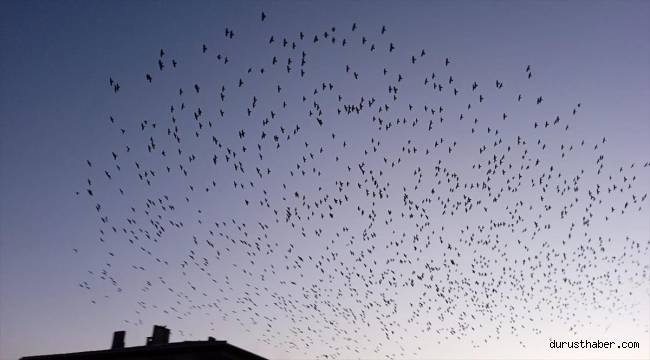 150 Evler Mahallesi Şehitler Cami ve çevresinde görülen sığırcıklar, akşam saatlerine doğru gökyüzü semalarında uçtu.