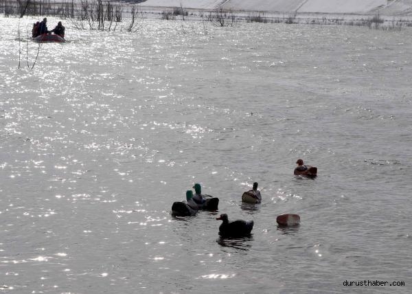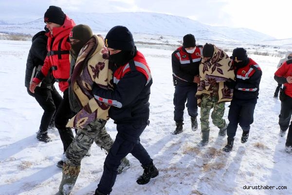 KAYSERİ'nin Develi ilçesinde avlanmak için botla baraj gölüne açılan 2 kişi, buz tutan noktada biriken kara saplandı. Yaklaşık 3 saat mahsur kalan 2 avcı, bölgeye sevk edilen ekipler tarafından kurtarıldı.