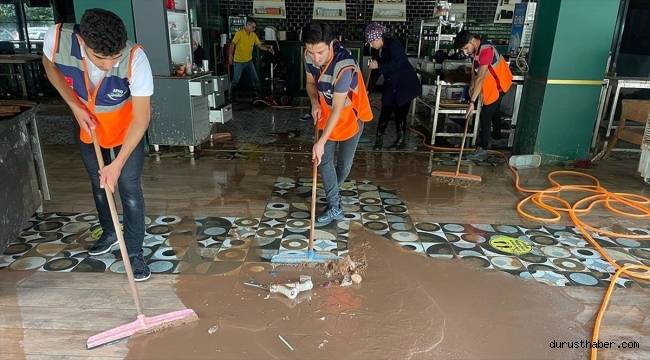 Kent merkezinde etkili olan sağanak nedeniyle oluşan taşkın ve selin yol açtığı rüsubat ekiplerin hummalı çalışmalarıyla temizlenirken, bölgede hayat kısmen normale dönmeye başladı.