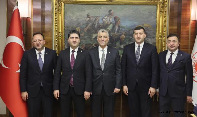 Heyet, Ticaret Bakanı Prof. Dr. Ömer Bolat’ı makamında ziyaret etti. Görüşmede Kayseri’nin sanayi ve ticaret potansiyeli masaya yatırıldı, iş dünyasının beklenti ve talepleri doğrudan iletildi.