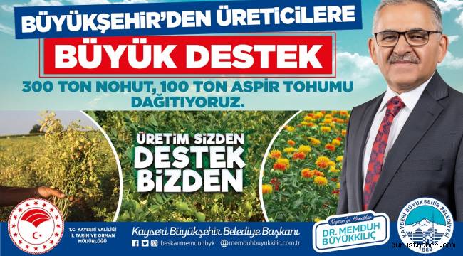 Salı günü gerçekleştirilecek nohut ve aspir tohumu dağıtım töreni ile toplam 10 milyon TL’nin üzerinde tohum dağıtacaklarını duyuran Büyükşehir Belediyesi, Başkan Dr. Memduh Büyükkılıç, verdiği bilgilerde şunları kaydetti:“16 ilçemizdeki üreticilerimize 10 milyon TL’lik 300 ton nohut tohumu ve ‘Kayseri Kendi Yağında Kavruluyor’ projesi kapsamında 16 ilçemizdeki üreticilerimize 1 milyon 500 bin TL’lik de 100 ton aspir tohumu dağıtımı gerçekleştireceğiz. Şimdiden çiftçimize hayırlı bereketli olsun.”