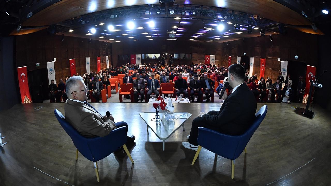 Kayseri Büyükşehir Belediyesi, öğrencilerin eğitim öğretim hayatlarını daha verimli ve keyifli geçirmeleri için ‘genç dostu’ anlayış ile hizmetlerini sürdürürken, Başkan Dr. Memduh Büyükkılıç da bulduğu her fırsatta gençlerle bir araya gelmeye devam ediyor.Bu kapsamda AGÜ Rektörlük Konferans Salonu’nda gerçekleşen etkinliğe Başkan Büyükkılıç’ın yanı sıra AGÜ Rektörü Prof. Dr. Cengiz Yılmaz, Büyükşehir Belediyesi Genel Sekreter Yardımcıları Ufuk Sekmen ve Mücahid Soyak ile daire başkanları ve genel müdürleri, AGÜ rektör yardımcıları, akademik ve idari personel ile öğrenciler katıldı.Programda, Kayseri Büyükşehir Belediyesi tarafından hazırlanan "Zenginlikler Şehri" tanıtım filmi ve öğrencilere yönelik sunulan hizmetleri içeren bir video izletildi. Öğrenciler, Kayseri’nin kültürel ve ekonomik zenginliklerini tanıtan videoyu ilgiyle izledi.